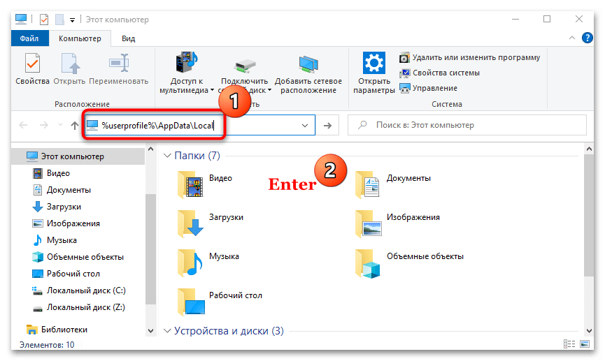 Скопируйте путь и вставьте его в адресную строку «Проводника». Нажмите на клавишу «Enter».
