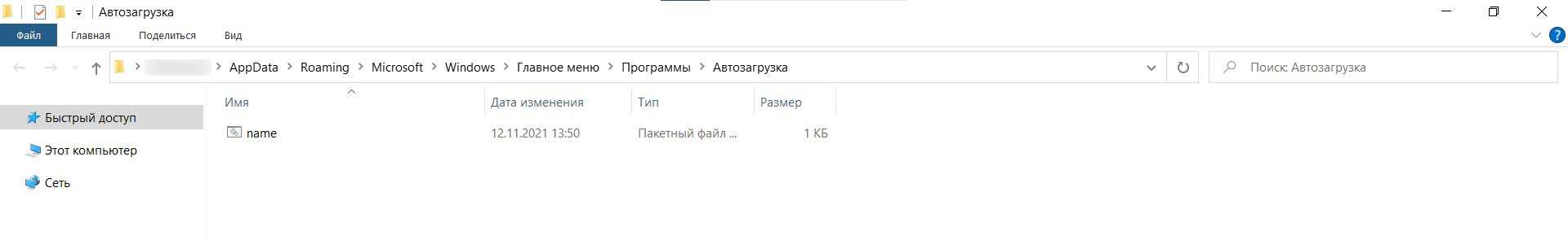 - Переместите сценарий (файл .bat) со своего рабочего стола и вставьте его в открывшуюся папку «Автозагрузка».
