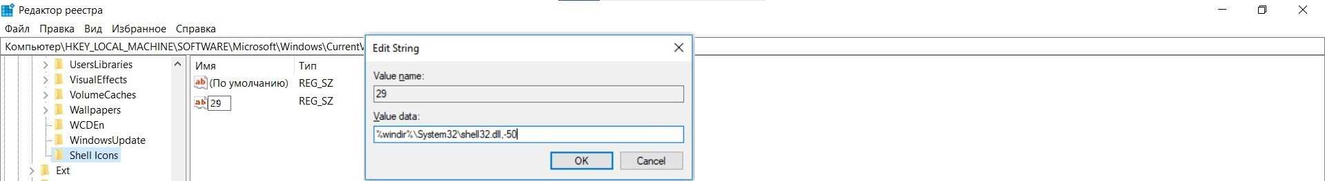 - Дважды щелкните по только что созданному значению и присвойте ему такие данные «%windir%System32shell32.dll,-50» без кавычек.