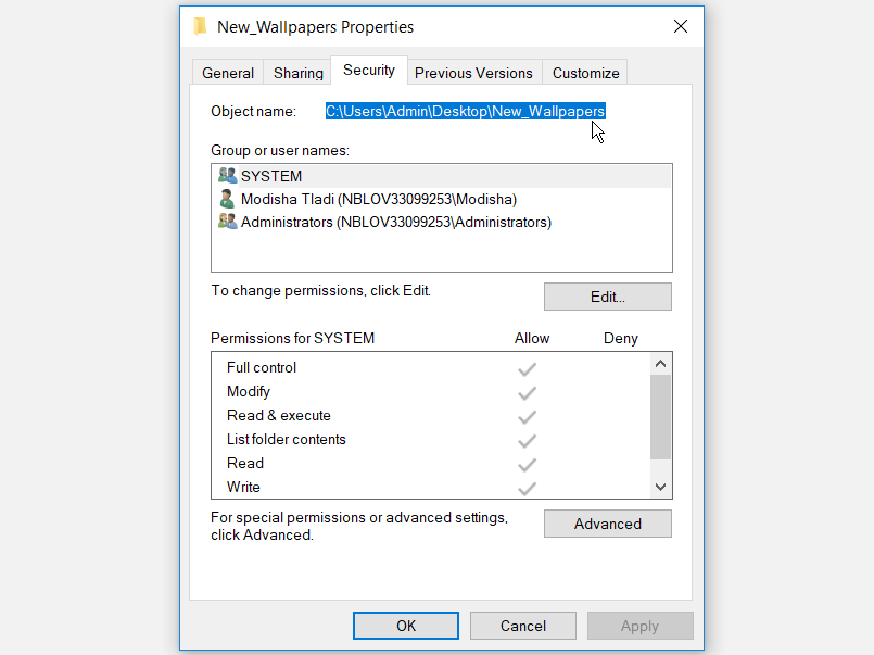 в появившемся окошке во вкладке «Разрешения» нажать «Изменить разрешения…»;