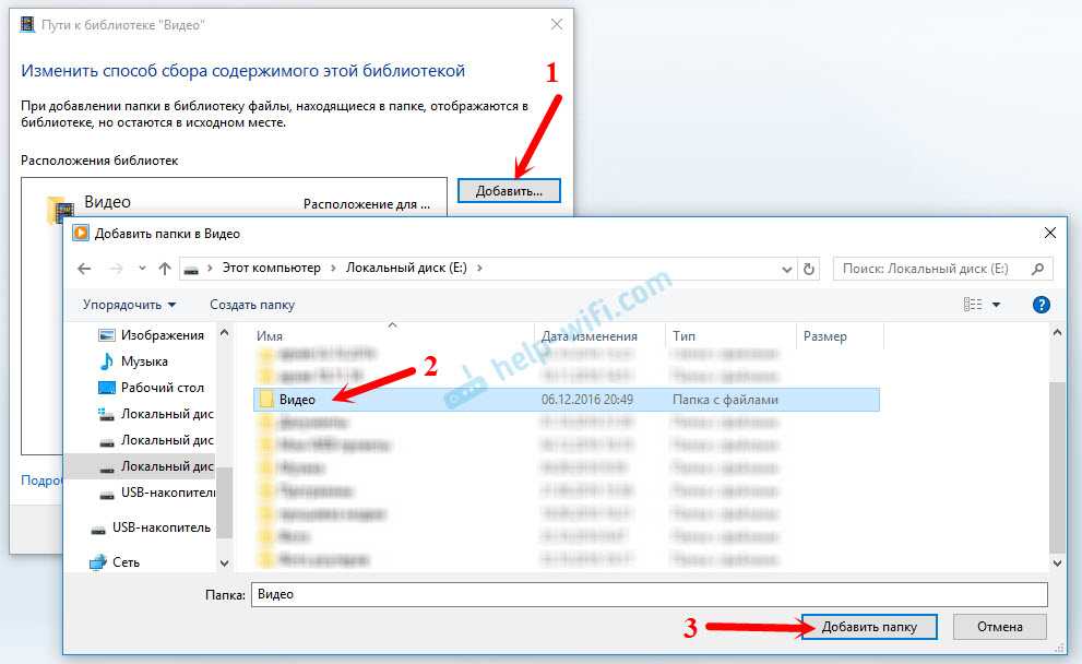 В новом окне нажмите на кнопку «Добавить». Выделите папку к которой нужно открыть доступ по DLNA, и нажмите на кнопку «Добавить папку».