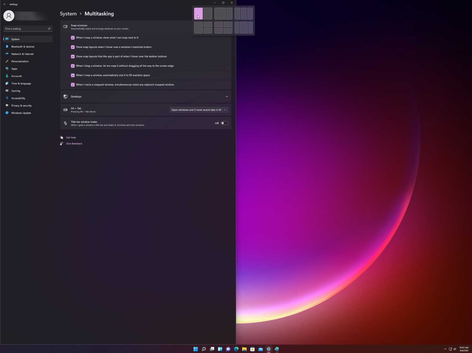Microsoft даже предоставила пользователям специальную страницу настроек в приложении Settings , с помощью которой можно настроить общую функциональность и применить свои пользовательские настройки. На данный момент мы можем использовать только четыре приложения одновременно с помощью Snap Layouts, и нет возможности создавать пользовательские макеты на основе сценариев использования.