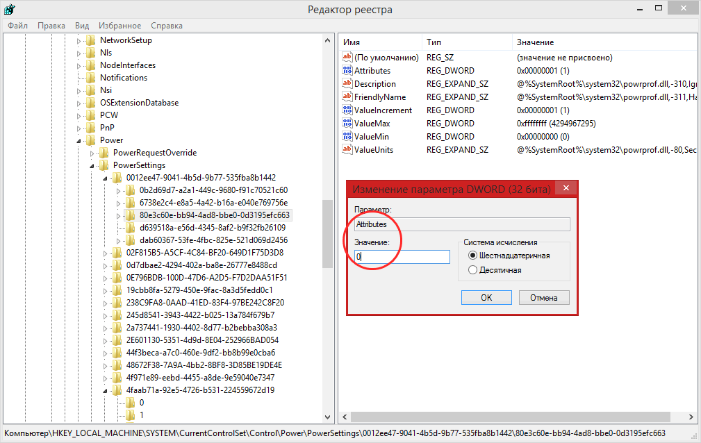 - Перейдите в папку: HKEY_LOCAL_MACHINE SYSTEM CurrentControlSet Control Power