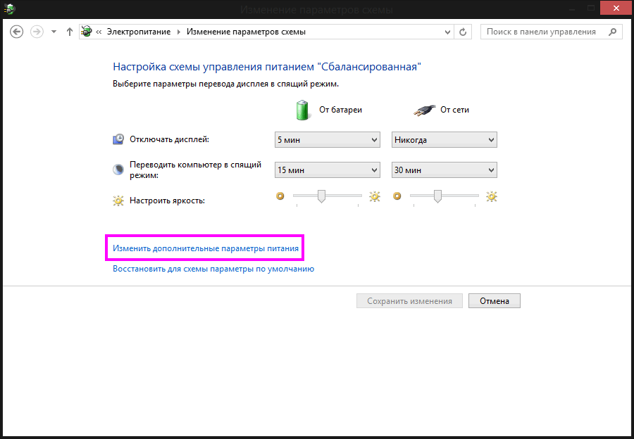 - Нажмите на Изменить дополнительные параметры питания . В этом окне вы можете настроить все настройки, которые вам не нравятся, на значения по умолчанию.