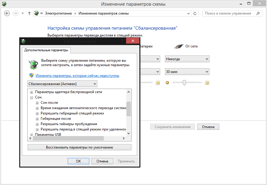 Восстановление схемы электропитания до параметров по умолчанию в Windows 10?
