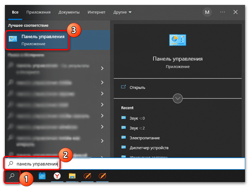 - Запустите «Панель управления», отыскав ее в меню «Пуск» через системный поиск.