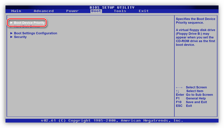 Необходимая опция находится в разделе «Boot» или, иногда, в «Boot Device Priority».