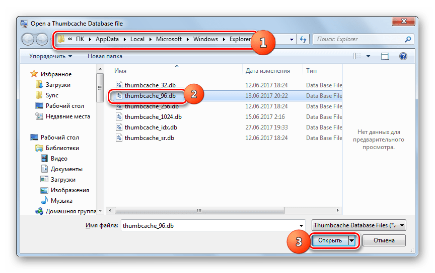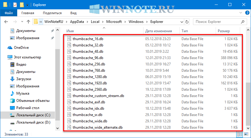Кэш эскизов представлен группой файлов с именами thumbcache и расширением *.db, которые расположены в скрытом каталоге: