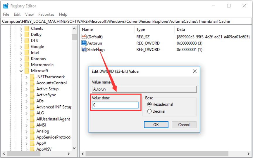 HKEY_LOCAL_MACHINE SOFTWARE Microsoft Windows CurrentVersion Explorer VolumeCaches Thumbnail Cache Узнайте, как одним щелчком мыши перейти к ключу реестра.
