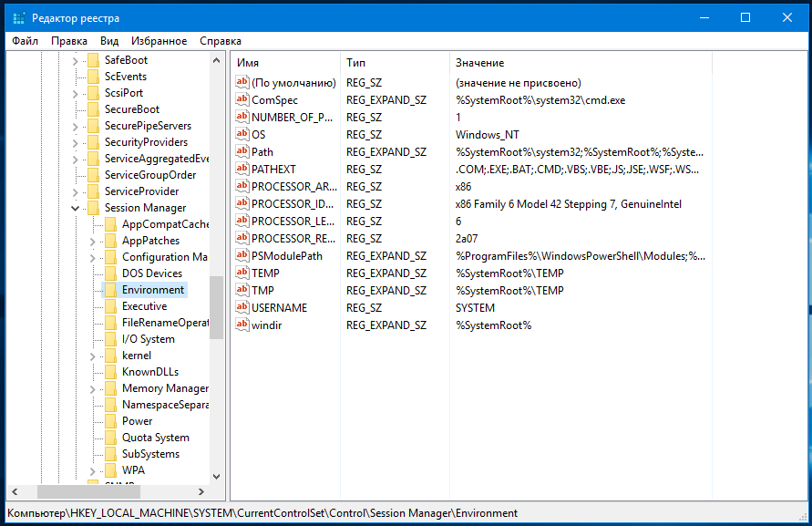 Чтобы просмотреть список системных переменных окружения, разверните ветку: