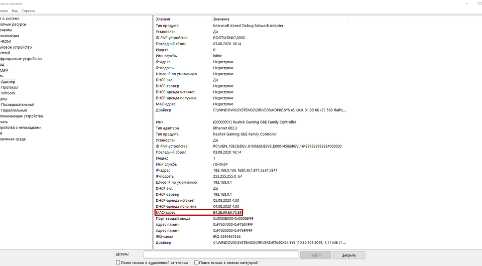 Узнаем и меняем MAC-адрес сетевой карты в Windows 10
