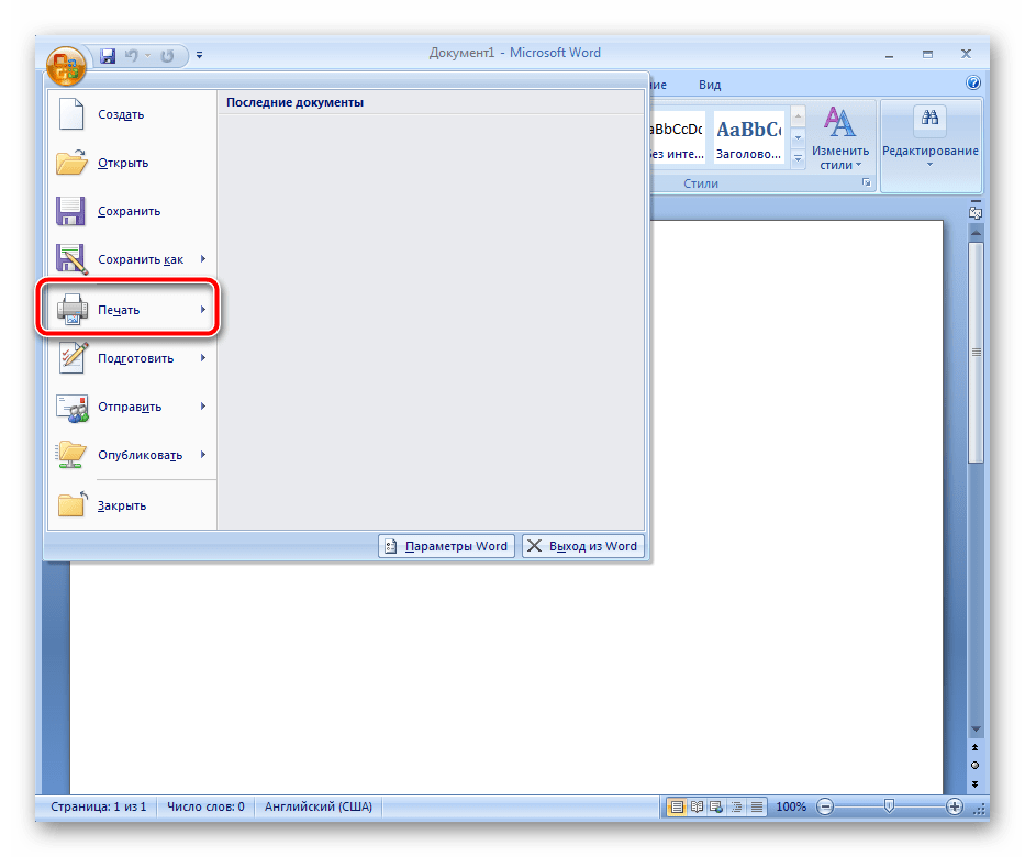 - Откройте «Меню» и перейдите в раздел «Печать».
