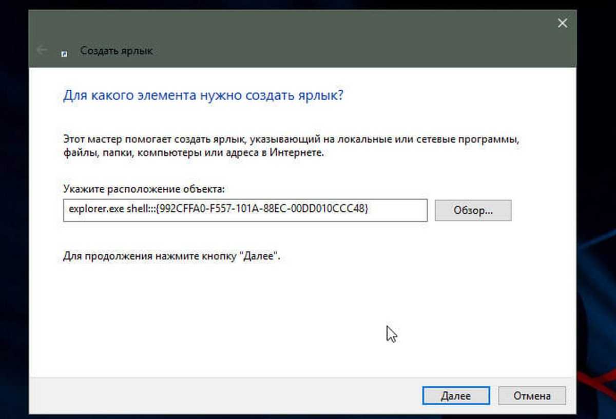 Примечание: Команда, используемая для ярлыка, представляет собой специальную команду shell:, которая позволяет напрямую открывать апплеты панели управления и системные папки. Чтобы узнать больше о командах shell:, доступных в Windows 10, обратитесь к следующей статье: