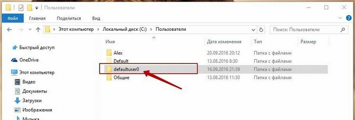 Для сим идите в локацию C: \ Пользователи и удалите сам каталог defaultuser0 со всем его содержимым. Если система по-прежнему сопротивляется, удалите ее, загрузившись в безопасном режиме или снизу Live CD.