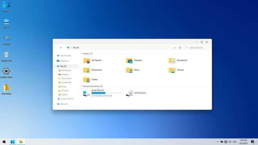 Эта тема была вдохновлена концептом с названием «Windows 20» от Avdan. Конечно, перенести дизайн полностью не вышло, но максимально приблизиться к оригиналу получилось. Тут и иконки в стиле Fluent Design, и закругления на месте.