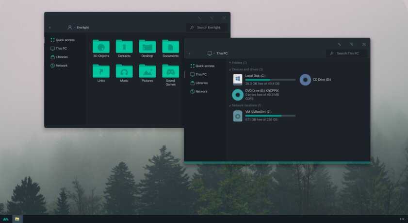 В отличие от других тёмных тем, эта выполнена не в чёрных и серых тонах, а в мятных, в паре со строгими значками. Отличным дополнением будет скин для StartIsBack и разные вариации оформления. А частые обновления оперативно исправляют баги и различные недоработки.