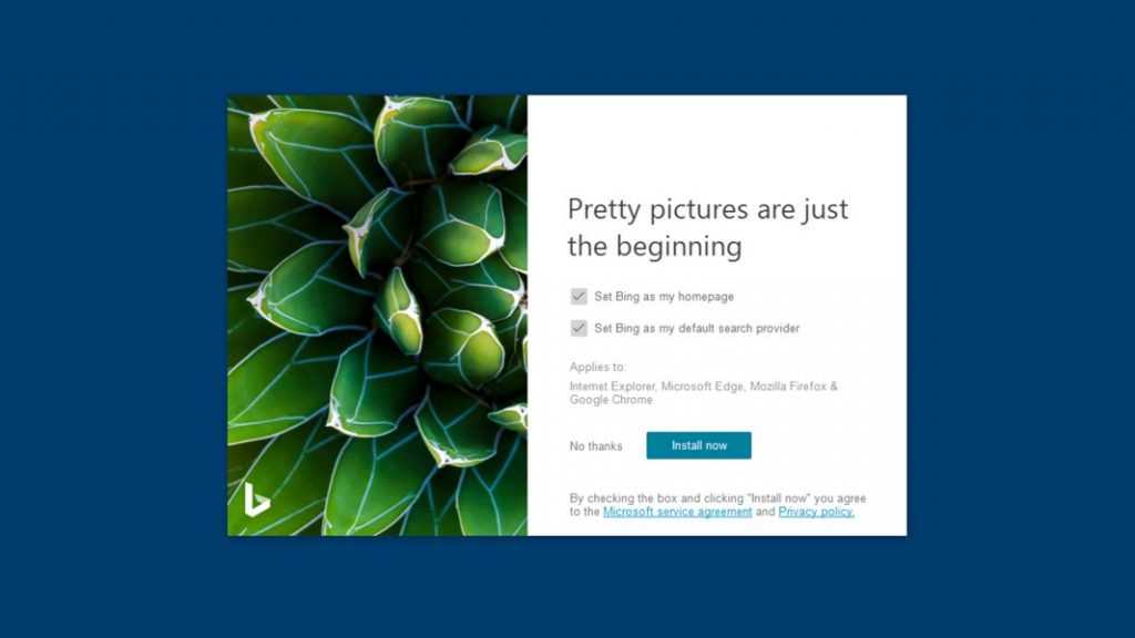 Запустите загруженное приложение, чтобы установить его, и обязательно отключите «Установить Bing в качестве моей домашней страницы» и «Установить Bing в качестве моей поисковой системы по умолчанию», если вы не хотите устанавливать Bing в качестве новой домашней страницы и поисковой системы по умолчанию в Chrome, Firefox и Edge.