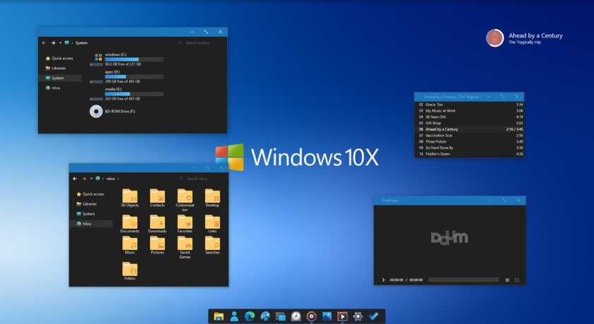 Релиз Windows 10X уже не за горами, а умельцы в интернете уже перенесли своё виденье дизайна будущей ОС на текущую версию Windows. Эта тема меняет не только внешний вид окон и иконок, но и имеет свои скины для PotPlayer, foobar2000 и различных приложений для имитации Dock.