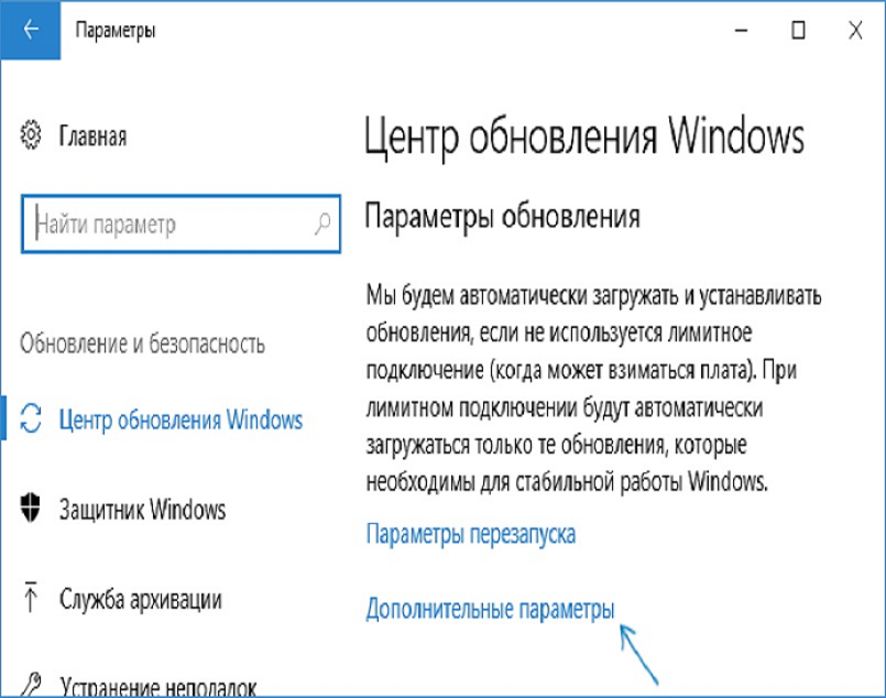 Вернемся назад на основную страницу «Центра обновления Windows», перейдем в раздел «Параметры перезапуска».