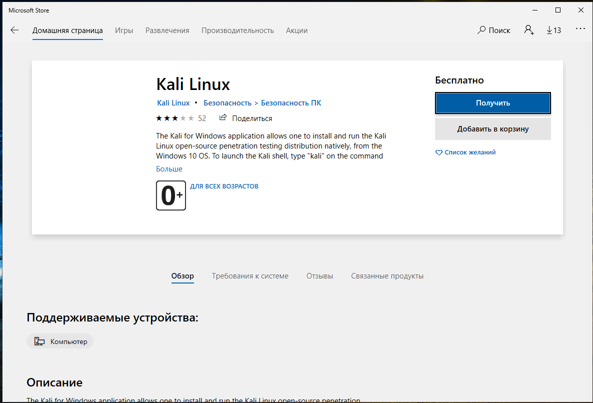 Примечание. Некоторые инструменты могут вызывать предупреждения антивируса при установке, пожалуйста, планируйте заранее. Обязательно посетите нашу страницу руководства Kali на WSL по адресу https://www.kali.org/news/kali-linux-in-the-windows-app-store