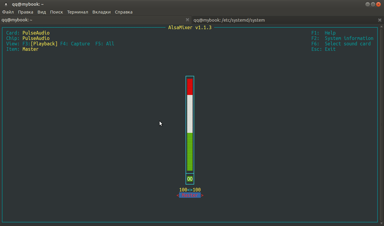 Управлять мастер-уровнем можно с помощью команды alsamixer