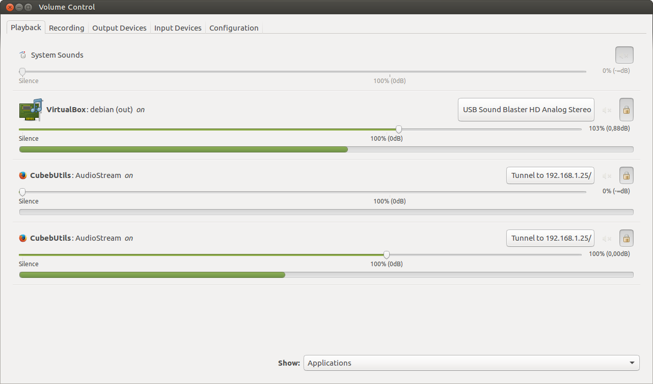 в списке устройств pavucontrol появится еще одно устройство которое соответствует нашему туннелю, если его выбрать, то должен звук пойти через него.