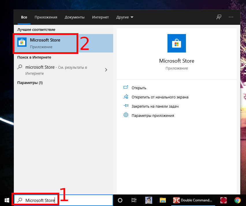 В общесистемном поиске введите «Microsoft Store» и запустите Магазин приложений Microsoft.