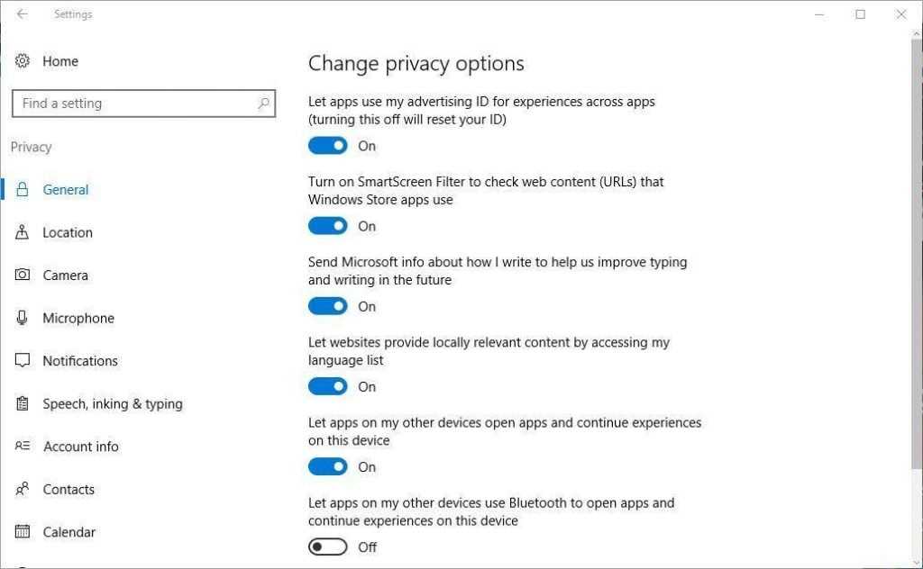 Перейдите в начните > Параметры > конфиденциальности & безопасности >Общие.