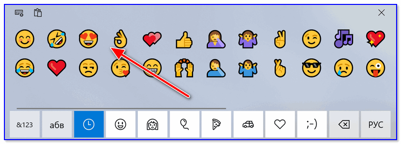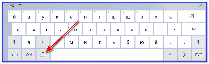 После, в нижней части экрана «всплывет» виртуальная клавиатура — на ней будет спец. кнопка для вызова смайликов (находится рядом с «Ctrl»).