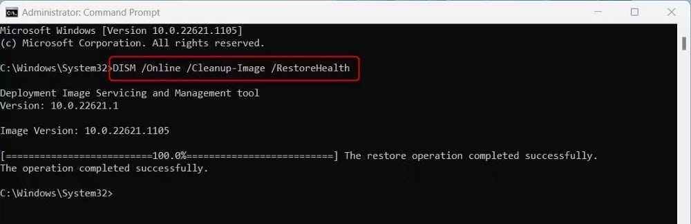Запустите сканирование DISM, чтобы восстановить потерянные системные файлы.