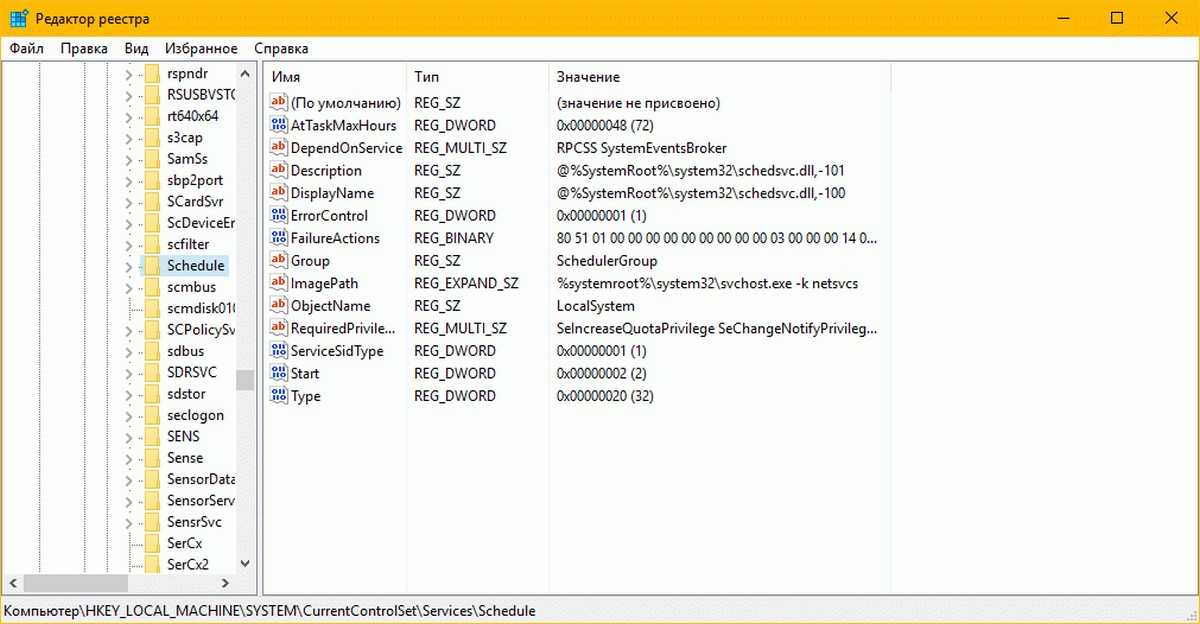 HKEY_LOCAL_MACHINESYSTEMCurrentControlSetServicesSchedule