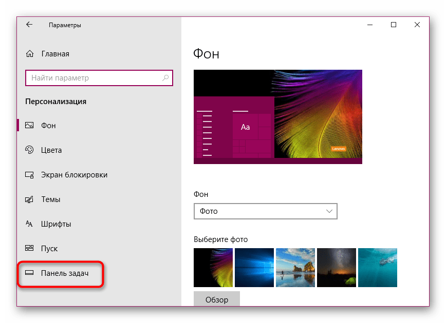 1. Зайдите в настройки панели задач, используя один из методов, описанных выше.