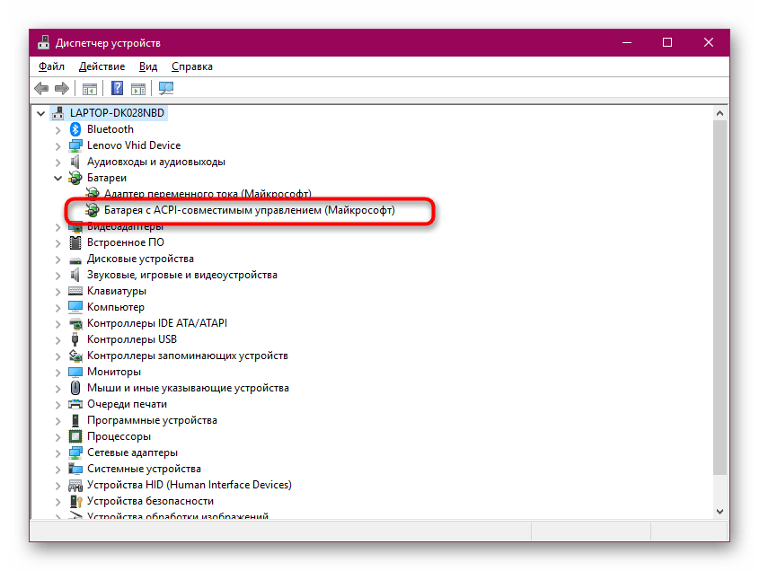 — Microsoft ACPI-совместимый метод управления Батарея.
