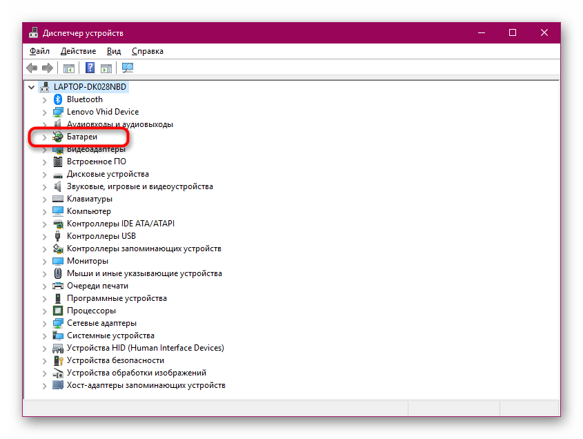 2. В диспетчере устройств выберите категорию «Батареи», чтобы развернуть ее. Там должно быть два пункта: