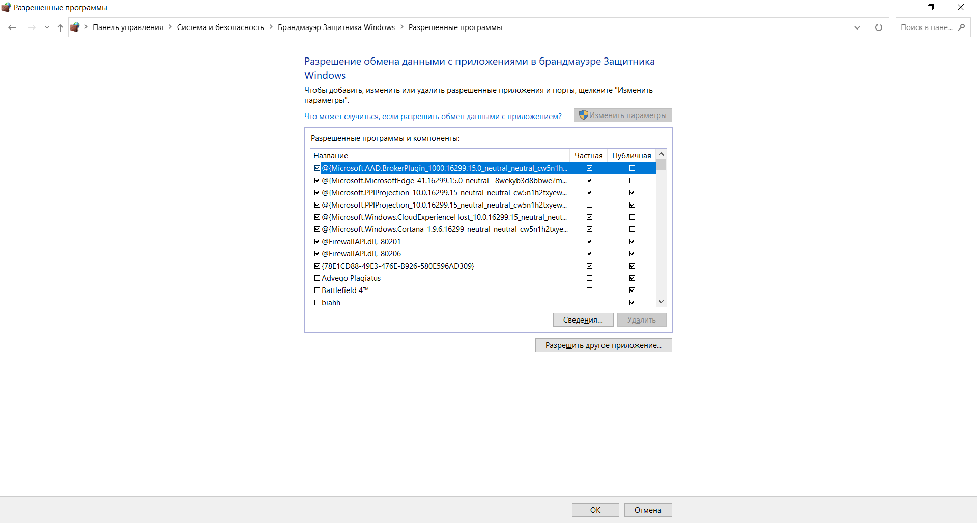Именно в этом окне настраивается перечень программ, которым разрешено выходить в интернет. Выполняется изменение параметров в пункте меню «Разрешение взаимодействия с приложением или компонентом в брандмауэре Защитника Windows». Владельцу компьютера рекомендуется периодически просматривать список и удалять незнакомые пункты.